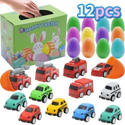 – Ein Set aus 12 dekorativen Mini-Ostereiern + 12 Autospielzeug