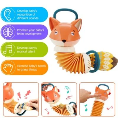 – Eine Vielzahl von Geräuschen statten den kleinen Fuchs aus. hat melodiöse und volle Klänge, wenn es gedehnt oder mit den Händen geklopft wird. Tippen Sie auf den Körper des Fuchses und es macht lustige kleine Soundeffekte. Drücken Sie auf die Nase des Fuc