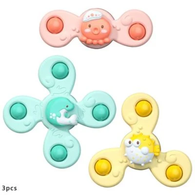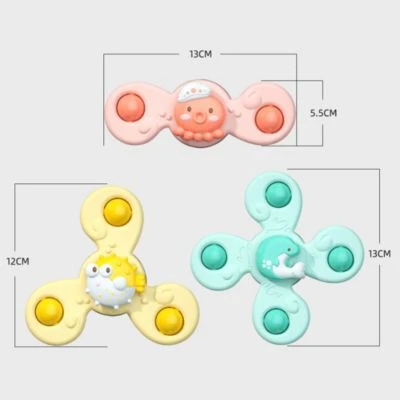 Der Saugnapf an der Unterseite des Spin-Saugspielzeugs kann jede flache Oberfläche aufnehmen, wie z. B. glatte Fliesen im Badezimmer, Esstisch, Kühlschrank, Glasfenster usw., was bequem und fest ist Baby kann es leicht drehen.