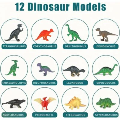 Das Kinder-Dinosaurier-Grabset enthält 1 Riesen-Dinosaurier-Ei (16 × 10 cm groß), 12 Dinosaurierfiguren + 2 Mini-Dinosaurier, 3 Grabwerkzeuge und 12 Dinosaurier-Lernkarten.