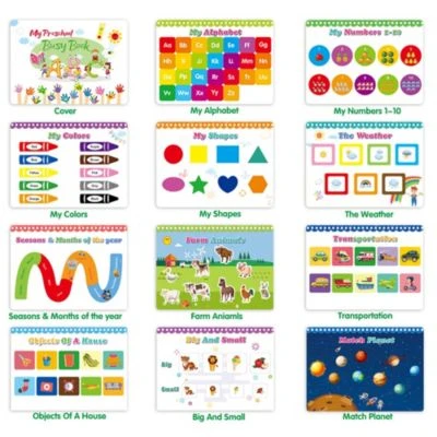 Wir haben 11 Themen zum Lernen für Kinder entwickelt, darunter Farben, Buchstaben, Zahlen, Formen, Größen, Jahreszeiten, Wetter, passende Bilder und mehr. Trainieren Eigenständigkeit, festigen Sprache, lernen die Buchstaben und schon etwas schreiben. Wir glauben, dass dieses geschäftige Buch die Lernfähigkeit von Kindern während des Spiels verbessern wird.