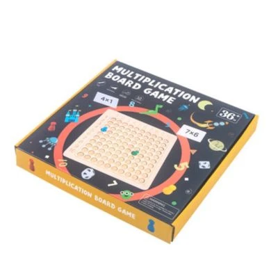 – Unser Multiplikations-Brettspiel-Set enthält 1 hölzernes Einmaleins-Tablett, 100 Multiplikationskarten, 2 Würfel und 4 Schachfiguren.