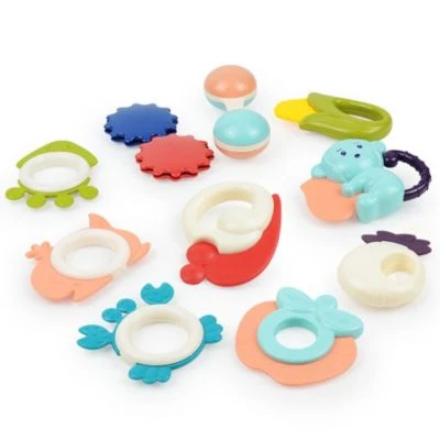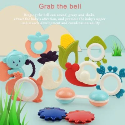 Baby Rassel Spielzeug hat Geschenkflasche mit 10 Stück Handgriff Beißring kann die Aufmerksamkeit des Babys auf sich ziehen.