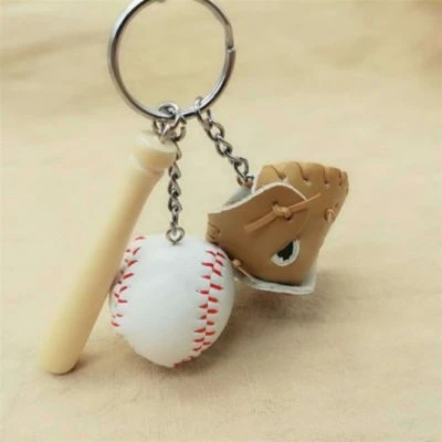 Jeder Baseball-Schlüsselanhänger besteht aus einem Baseball Anhänger von 3,5 cm, einem Schläger Anhänger von 7,5 cm und einem Baseball-Handschuh Anhänger aus PU-Leder.