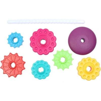 – Der Turm ist ideal für kleine Hände und ist vielseitig einsetzbar. Man kann die einzelnen Scheiben nach Größe oder Farbe sortieren, oben aufstecken und dann beobachten wie sie runterrollen, mit den Händen versuchen sie wieder hochzurollen, eine Rampe runt