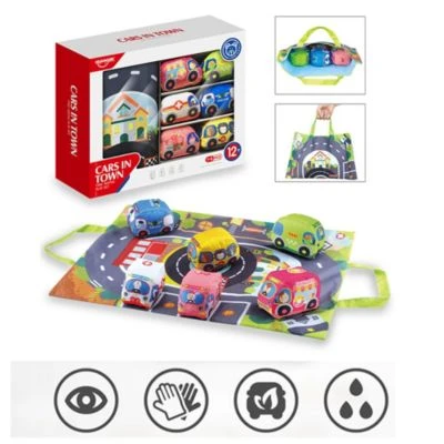 – Dieses weiche Autospielzeug-Set besteht aus weichem Stoff und Füllschwamm.